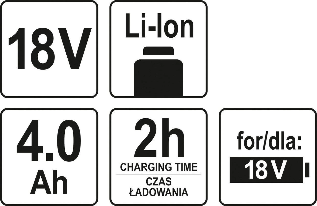 YATO Акумулятор Li-Ion : 18 В, 4.0 А/Год, тривалість заряджання- 2 год