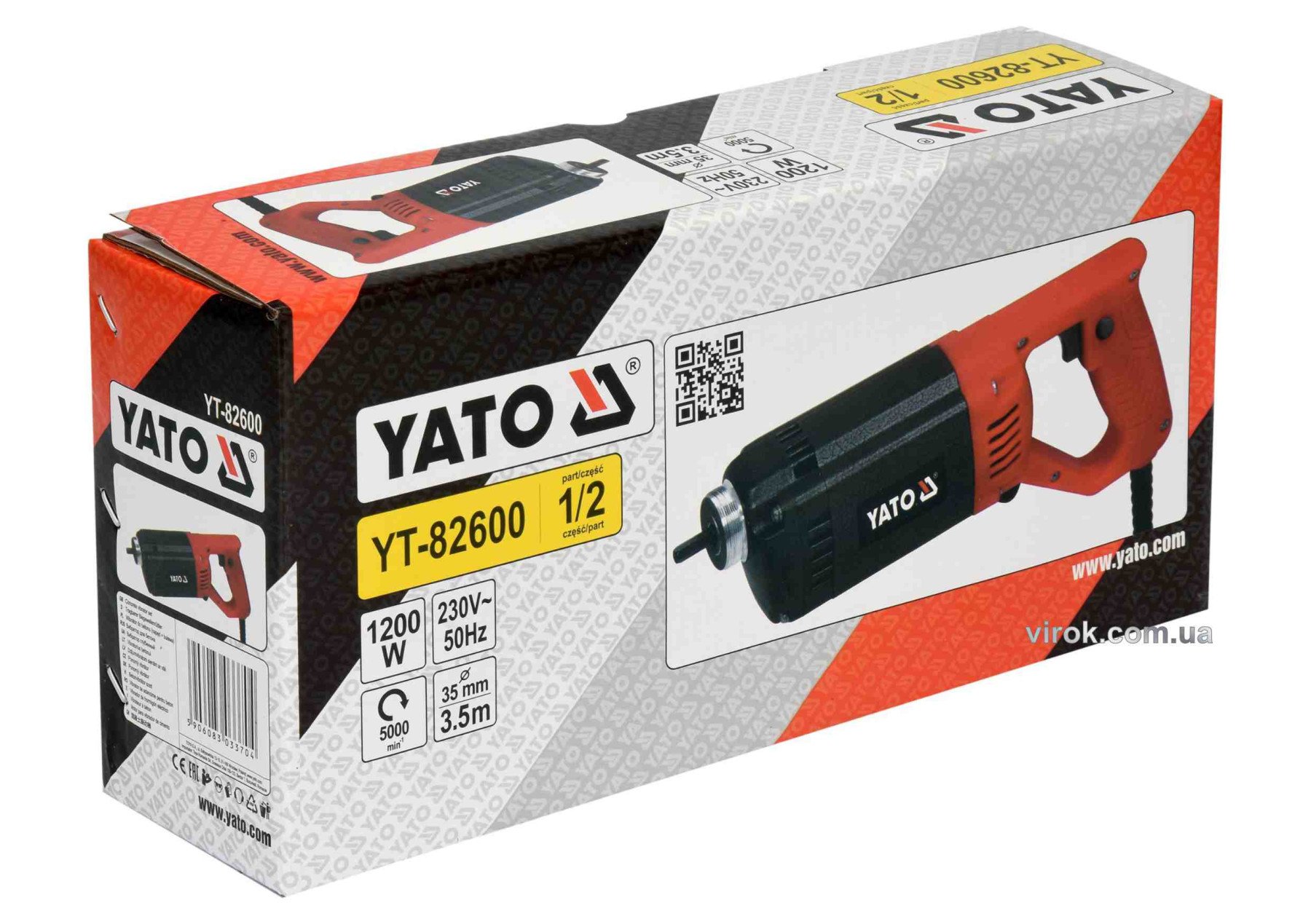 Вібратор YATO YT-82600 призначений для вібрування бетону за допомогою високочастотної вібрації для отримання маси з рівною поверхнею та видалення з неї повітря. Це важливо для правильного покриття елементів армування, перекриттів і колон, а також досягнення міцності бетона, яка вказана в проекті будівництва.
