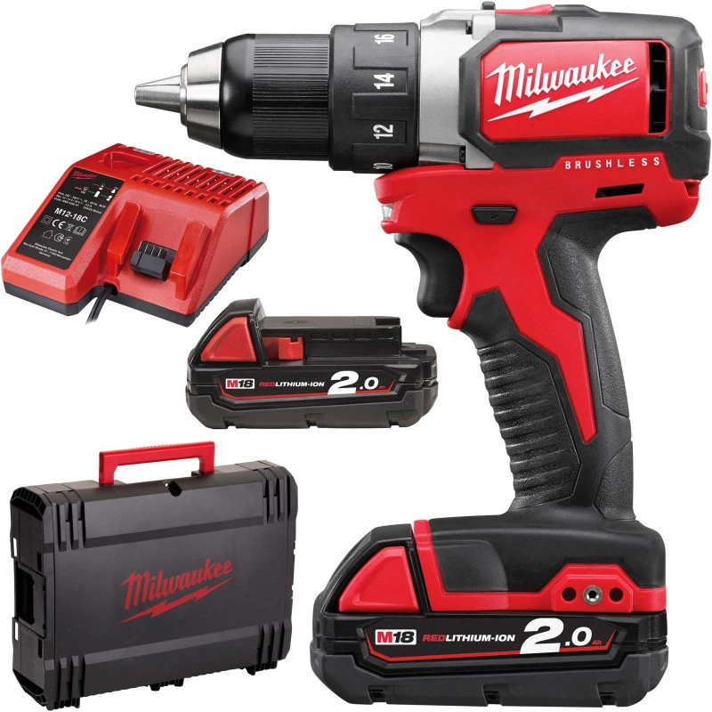 MILWAUKEE Дриль-шурупокрут акумуляторний , M18 CBLDD-202C, 60Нм, (+ заряд.пристрій, 2 акум.Х 2Аг, кейс) | 4933464317