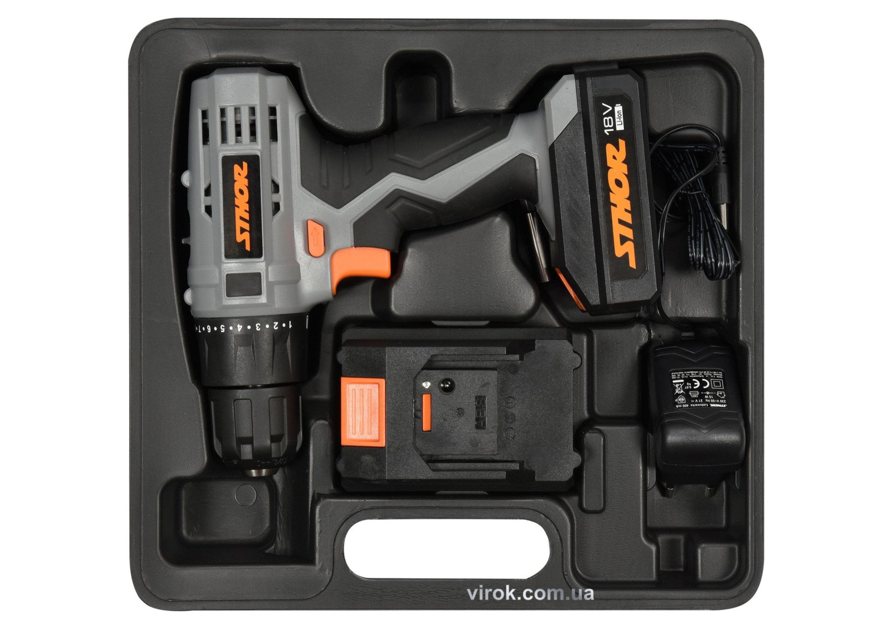 - Міцний літій-іонний акумулятор 18 В, також підходить для інших інструментів STHOR з тієї ж серії
