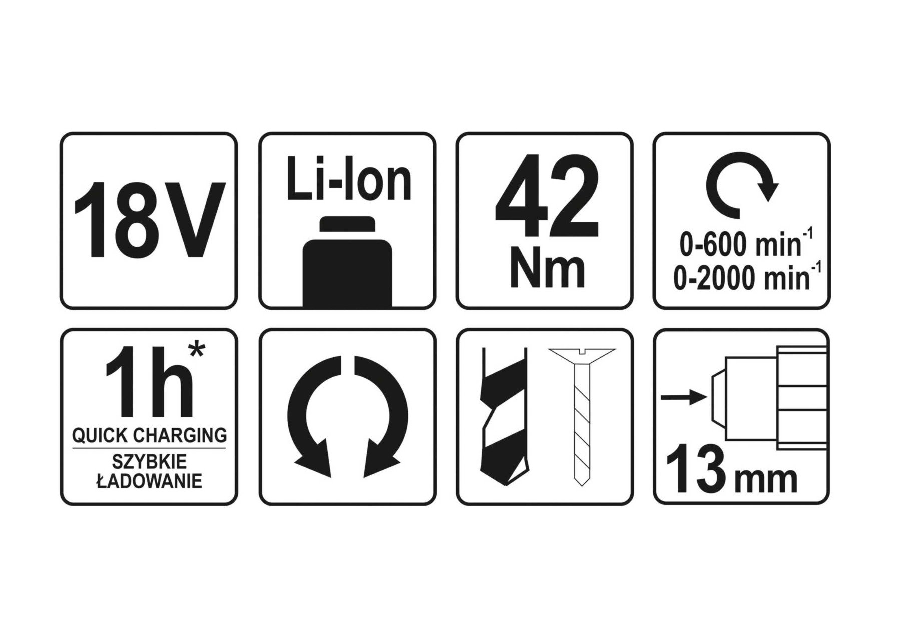 Технічні характеристики Безщіткового акумуляторного дриля-шуруповерта YATO YT-82795
