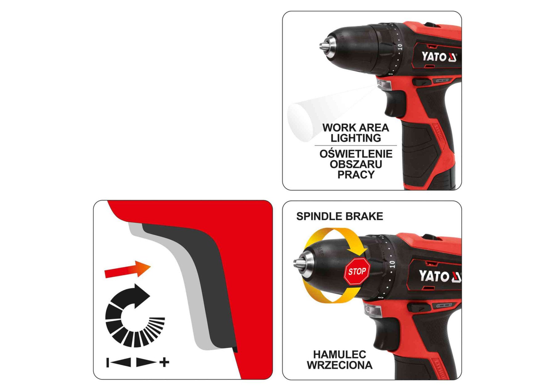 YATO Шуруповерт компактний акумуляторний : Li-Ion 12 В, 2 Агод, крутн.мом.- 30 Нм, патрон Ø≤10 мм