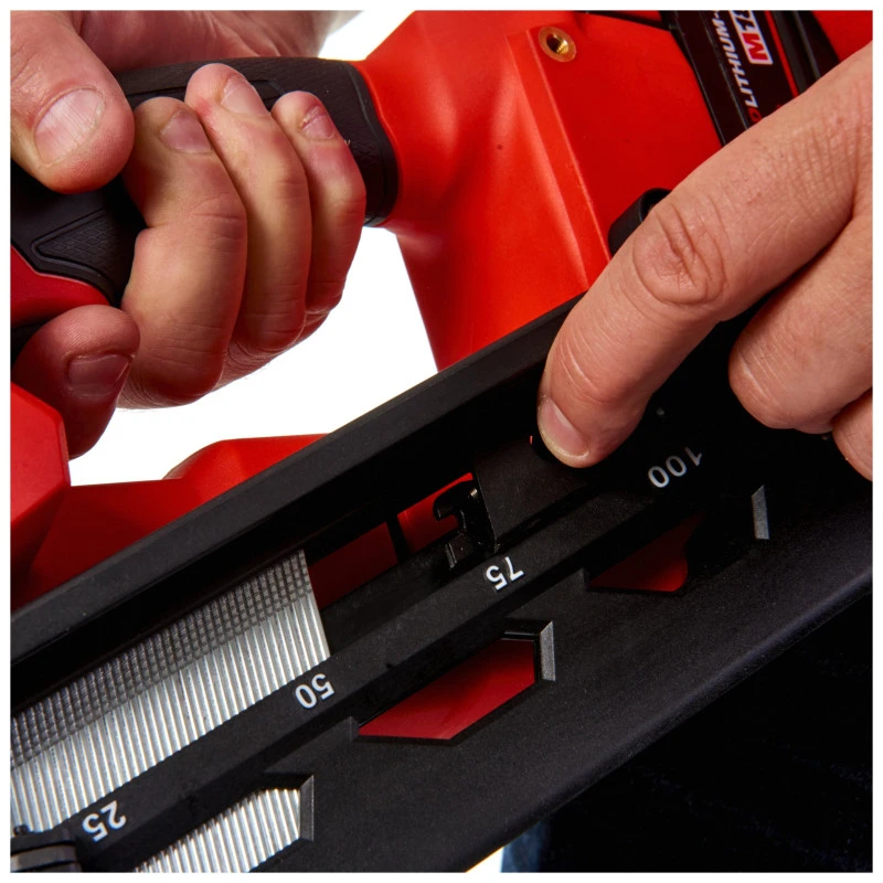 Быстрая и удобная настройка глубины забивания без ключа обеспечивает необходимую глубину посадки гвоздей