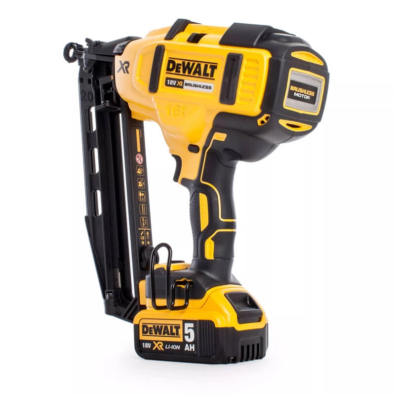 Пістолет цвяхозабивний акумуляторний DeWALT, 18В XR Li-Ion, безщітковий, діаметр/довжина цвяха 1.6/63 мм, вага 2.4 кг, 2 акумулятори 5 Аг, зарядний пристрій, валіза