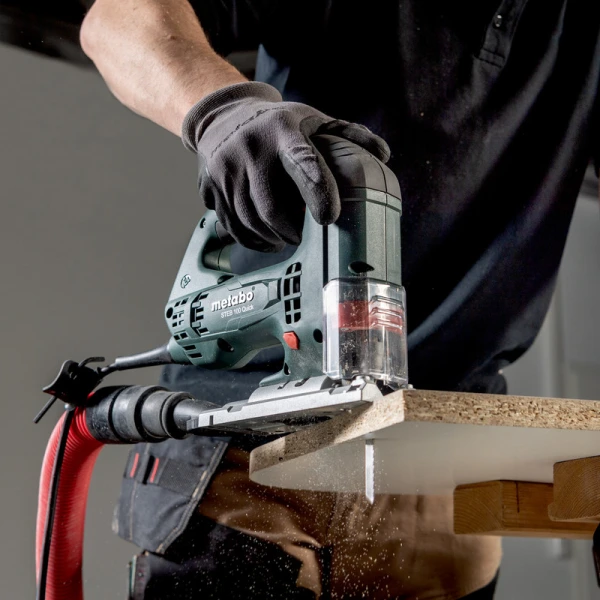 - Вага 2 кг Підходить для деревини, кольорових та чорних металів Додатково функція здування тирси з робочої зони, повнохвильова електроніка Vario-Constamatic (VC) для роботи з частотою ходів для підтримки обертів під навантаженням, Metabo Quick для заміни пиляльного полотна без інструментів, можливість підключення універсального пилососа Довжина кабелю 4 м Напруга живлення 220 / 230 В Потужність 710 Вт Габаритні розміри брутто 80x380x210 мм Комплектація всмоктуючий патрубок для пилососа, шестигранний ключ, захисне скло, гарантійний талон, інструкція, упаковка Руків'я грибовидне прогумоване Кількість коливань / ходів 1000 - 3100 об/хв Амплітуда коливань / ходів 22 мм Кут нахилу / повороту - 45 / + 45 ° Тип живлення мережевий Ступені маятникового ходу 4 Глибина пропилу (дерево, пластик) 100 мм Глибина пропилу (кольорові метали) 25 мм Глибина пропилу (чорні метали) 10 мм -
