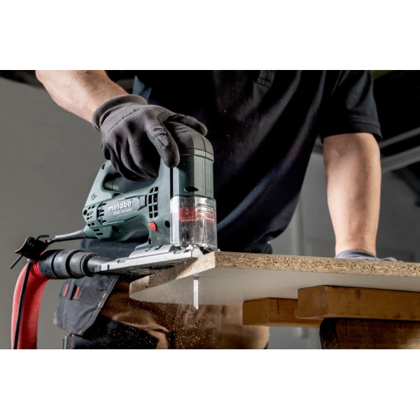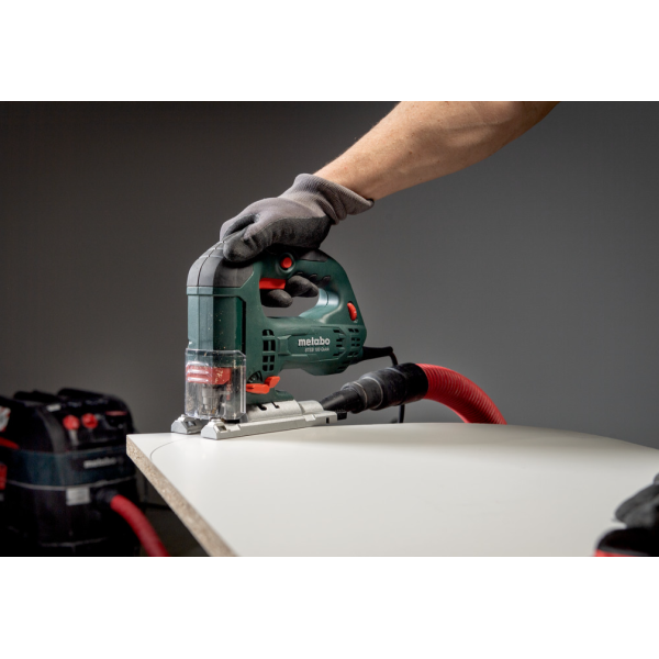 - Вага 2.1 кг Підходить для деревини, кольорових та чорних металів Додатково функція здування тирси з робочої зони, електроніка Vario-Constamatic (VC) для регулювання кількості обертів, Metabo Quick для заміни пиляльного полотна без інструментів, світлодіодна підсвітка робочої зони, видування стружки з зони розпилу, можливість підключення універсального пилососа Довжина кабелю 4 м Напруга живлення 220 / 230 В Потужність номінальна споживана 710 Вт / віддавана 470 Вт Комплектація всмоктувальний патрубок, захисне скло, захисна пластина захисту від сколів, гарантійний талон, інструкція, упаковка Руків'я скоба з нековзкою накладкою Softgrip Кількість коливань / ходів 1000-3100 об/хв Амплітуда коливань / ходів 22 мм Кут нахилу / повороту - 45 / + 45 ° Тип живлення мережевий Ступені маятникового ходу 4 Глибина пропилу (дерево, пластик) 100 мм Глибина пропилу (кольорові метали) 25 мм Глибина пропилу (чорні метали) 10 мм -