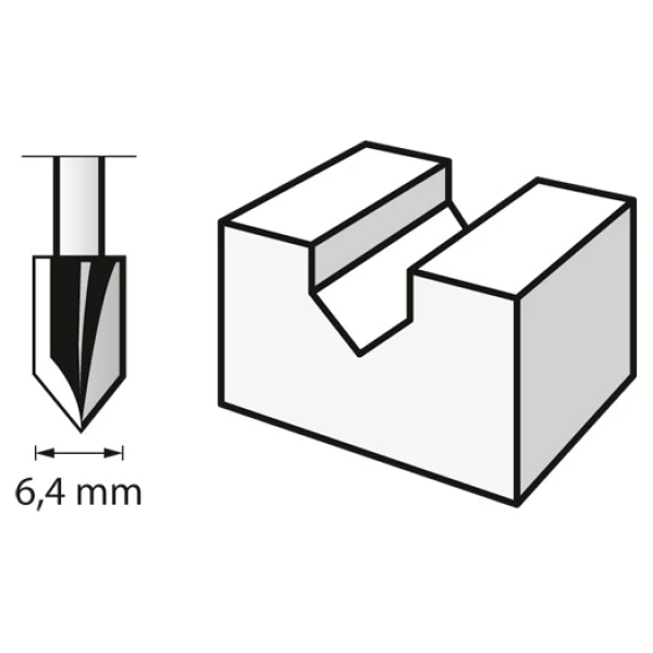 Параметры Диаметр, мм 6.4 мм - Загальна довжина 37 мм Застосування для V-подібного паза, для гравірування слів та літер Допустима швидкість обертання 35000 об/хв Хвостовик 3.2 мм -