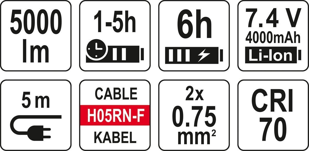 YATO Прожектори 2 шт. 2828 SMD-діодні: акумул. 4,7 В, 500-5000 Lm, на штативі h= 95-140 см