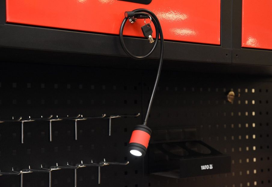 Універсальна світлодіодна лампа з гнучким тримачем YATO YT-08516 зі світловіддачею 100 лм. Її універсальність можливе завдяки довгому гнучкому тримачеві з магнітним наконечником. Можна використовувати, як і настільну лампу, робочий прожектор або світильник для майстерні.