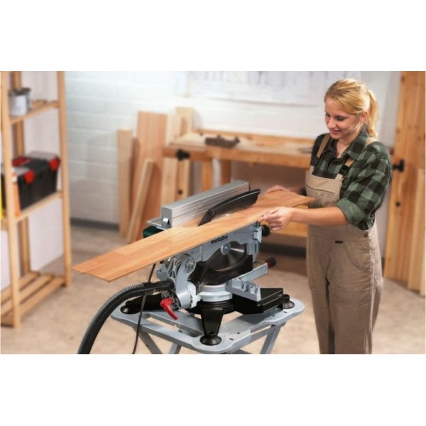 - Вага 22 кг Додатково плавний пуск, гальмо двигуна, захист від повторного пуску Довжина кабелю 2.8 м Потужність 1600 Вт Габаритні розміри 658x600x460 мм Комплектація пиляльний диск по дереву (56 зубців), 2 вбудовані розширення столу, торцювальний упор, паралельний упор, затиск для заготовки, інструмент для зміни пиляльного диску, мішок для збору тирси, штовхач Швидкість обертання валу 3700 об/хв Діаметр диска 305x30 мм Глибина пропилу (45°) 70 мм Глибина пропилу (90°) 102 мм Швидкість різу 60 м/с Кут нахилу / повороту 47°/2° Розмір столу 462x261 мм Ширина пропилу (90°) 150/100 мм Кут нахилу стола 52°/52° -