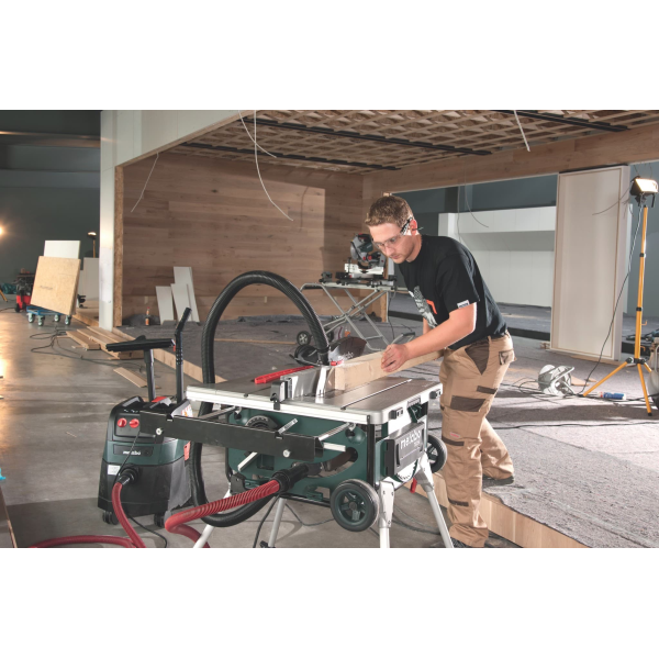 - Вага 28.5 кг Додатково підключення пилососу, захист від повторного пуску, плавний пуск, гальмо двигуна, захист двигуна від перевантаження, колеса для транспортування, складна конструкція Довжина кабелю 3 м Потужність споживана 1500 Вт (віддавана 900 Вт) Габаритні розміри 670x730x355 мм Комплектація пиляльний диск 30 зубів, паралельний упор, кутовий упор, подовження столу, пристрій видалення тирси, штовхач заготовки, опорна рама, гумові шини, розширення столу (ліворуч), розширення столу (праворуч), інструкція, гарантійний талон, упаковка Швидкість обертання валу 5000 об/хв Габарити платформи мін/макс: 585/780 x 630/930 мм Діаметр диска 216 мм Глибина пропилу (45°) 43 мм Глибина пропилу (90°) 63 мм Швидкість різу 57 м/с Тип живлення від мережі 220 В Кут встановлення диска від -1.5 до 46.5° Робоча висота столу 850/355 мм Ширина різу на паралельному упорі 425 мм -