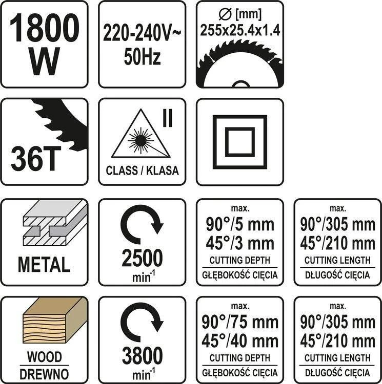 Профессиональная торцовочная пила с подачей для прямой и угловой резки дерева и стали. Используется во время ремонтных и строительных работ, для резки плинтусов, панелей, потолков, паркетов, плинтусов и ПВХ, кабельных лотков, брусков, планок, стальных профилей, например, для ограждений и ворот и т. д. Обеспечивает точную и быструю обработку материалов. Стабильное основание с точной горизонтальной и вертикальной регулировкой угла резки. Боковые выдвижные скобы облегчают резку удлиненных элементов. Лазерный индикатор линии разреза. Подача подшипника режущего диска. Плавно работающий кожух откидного ножа, встроенный в выключатель. Встроенный в основание зажим обеспечивает надежную и быструю иммобилизацию обрабатываемого материала. Разборчивая угловая шкала обеспечивает точное резание. Возможность использования пакета для стружки или подключения пылесоса. Компактные размеры и транспортировочная ручка в центральной части корпуса обеспечивают правильный баланс и удобство переноски.