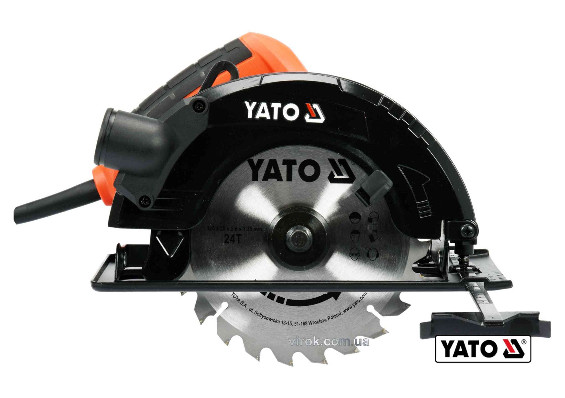 YATO Пила дискова ручна мережева : P= 1.5 кВт, диск Ø=185x20x2.8 мм, кут 0-45°, гл.≤ 65мм