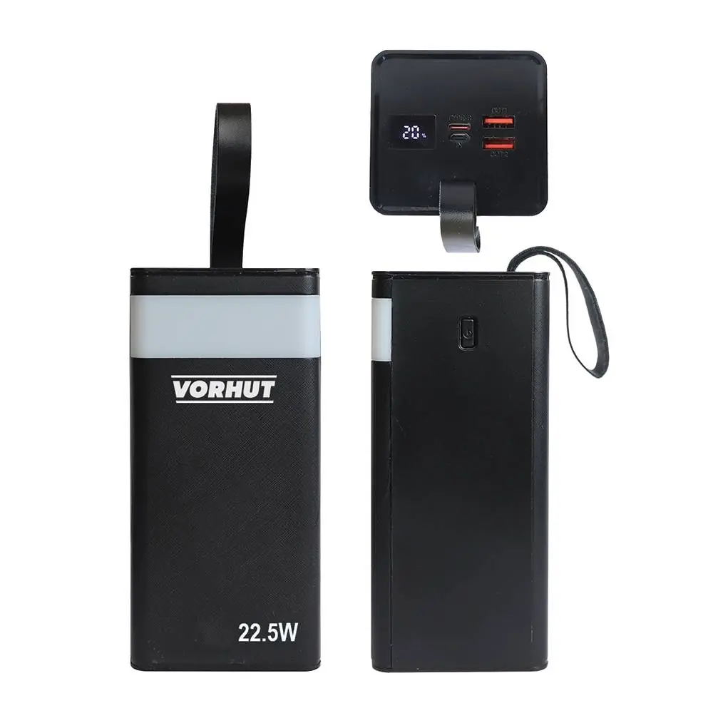 Портативний зарядний пристрій підходить для тих, кому необхідно мати біля себе мобільний акумулятор для різних цілей: зарядити смартфон, планшет, смарт-годинник, включити ліхтарик. Ємність 50000 мАг дозволить декілька разів зарядити телефон або планшет (в залежності від моделі). Застосування якісних літій-полімерних батарей стало запорукою продуктивного функціонування. Панель слотів пристроя використовує вхідні та вихідні порти MicroUSB, USB Type C та USB. Таке поєднання дозволить одночасно заряджати смартфон і планшет, а також зручно заповнювати витрачений заряд самого портативного девайсу. Заряд батареї відображається на диспеї у відсотках. В пристрої присутня технологія Quick Charge яка використовує спеціальні алгоритми для оцінки поточного енергоспоживання пристрою і заряджає до чотирьох разів швидше за звичайну зарядку. Також пристрій остащений сучасною технологією PowerDelivery 22,5 Вт, завдяки якій можна одночасно заряджати павербанк від розетки та планшет або смартфон від повербанку. Ця технологія також регулює силу струму, що передається між блоком живлення і пристроєм, що заряджається, щоб процес зарядки був максимально швидким і безпечним. Також гаджет оснащений світлодіодним ліхтарем. Для зручного використання присутній ремінець. Виходи USB-А:4.5V-5A/5V-4,5A/5V-3A/9V-2A/12V-1.5A. Вихід TYPE-С:5V-3A/9V-2.22A/12V-1.67A. Вхід для зарядки TYPE-C :5V-3A/9V-2A/12V-1.5A. Вхід для зарядки Micro USB :5V-2A/9V-2A. Дисплей з відображенням заряду акумулятора у відсотках. LED ліхтар. 22,5 W + PD 20 W швидка зарядка. Час повної зарядки : 14 годин.