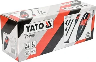 YATO Порохотяг акумулятор.- 18 В: (БЕЗ АКУМУЛЯТОРА), збірна ємність- 0,5 л, 2 подовжув. і насадки