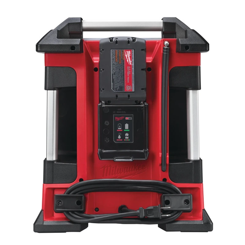 Цифровий тюнер AM/FM; динаміки 40Вт; Bluetooth; відкривачка для пляшок; вбудоване з/в для акумуляторів М18; USB; живлення від розетки або М18; шнур; 2-і батареї ААА; вага 7,7; картон