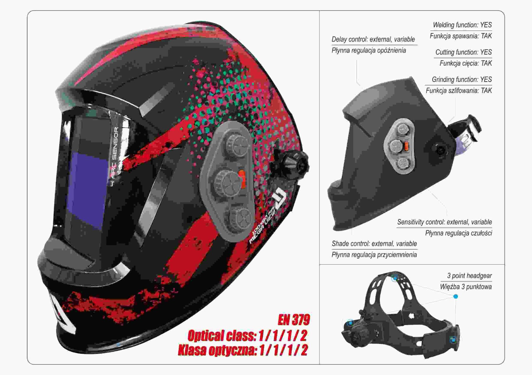 - Відповідає стандарту EN175, EN379 і 2016/425