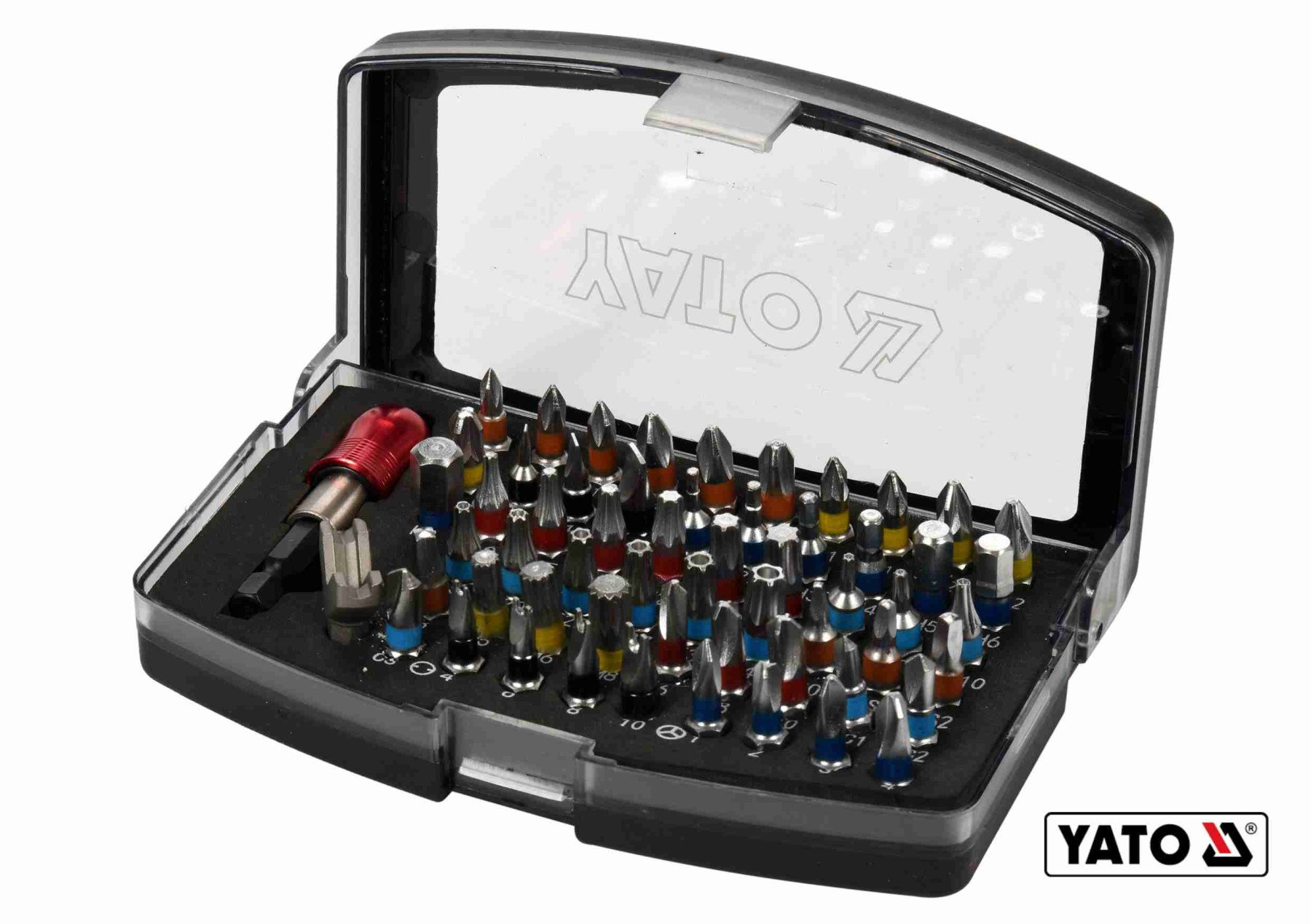 Професійний набір викруткових насадок YATO YT-06424 складається з 59 елементів. Призначений для закручування і відкручування гвинтів у важкодоступних місцях. Рекомендується для автосервісів та автолюбителів. Вони містять функціональні наконечники з кислотостійкої сталі AISI S2 і перехідник. Упаковані в коробку з розбірливим маркуванням елементів.