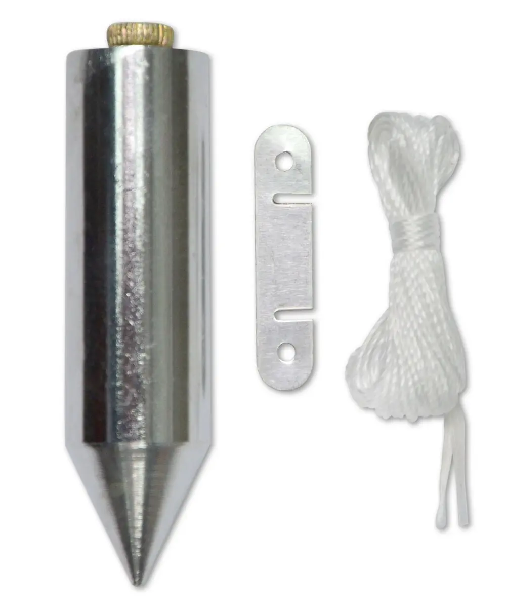 Отвес малярный. Отвес изготовлен из стали, отвес хромированный. Отвес имеет шнур длиной 3м. Отвес имеет вес от 100 г до 300 г. Отвес малярный используется для проверки и разметки вертикальных поверхностей. Отвес имеет пластину для крепления. -