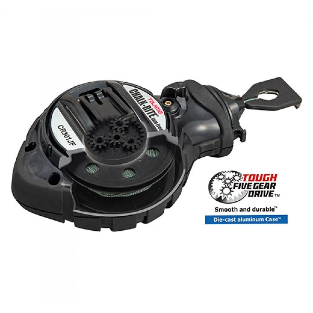 Модель Jam Free представляет собой корпус из полупрозрачного армированного ABS-пластика, который дополнительно по контуру покрыт ударопоглощающими эластомерными накладками. Внутри расположен надежный износостойкий барабан, высококачественные шестерни и планетарный редуктор, предназначенный для чрезвычайно длительного срока эксплуатации. В отбивке реализован механизм TOUGH FIVE GEAR DRIVE, который обеспечивает передачу скорости сматывания в соотношении 5 : 1. Инструмент оборудован фиксатором рычага от случайного разматывания шнура. Также особого внимания заслуживает отверстие для заправки отбивки сухой краской и колпачок. Отверстие, через которое инструмент заправляется порошком имеет большой размер для обеспечения более комфортного и быстрого заполнения. Благодаря резиновому уплотнителю колпачок всегда надежно устанавливается на корпус и защищает от постоянного загрязнения инструмента, пользователя и рабочей поверхности краской, которая самопроизвольно сыплется из корпуса при использовании. Отверстие, через которое протягивается шнурок, представляет собой латунную втулку, которая вмонтирована в пластиковый колпачок. Такая втулка позволяет сохранять правильный размер и геометрию отверстия в течении длительного использования, а также не дает высыпаться избыточному количеству краски при вытягивании шнурка. Отдельно стоит рассмотреть шнур и зацеп. Tajima единственный производитель, который использует не крученные, а плетеные шнурки из неопренового волокна, комплектует ими все свои отбивки и дает возможность приобрести их отдельно, как запчасть. Фирменные шнурки Tajima чрезвычайно износостойкие, не растягиваются даже при длительном использовании и всегда оставляют прямую, стабильную и очень четкую линию. На конце шнурка прикреплен зацеп, который в свою очередь расширяет возможности фиксации и добавляет удобства в работе. Он имеет большой размер для лучшего захвата и возможности работать в перчатках, а внутри него сделано отверстие для крепления за гвоздь или саморез.