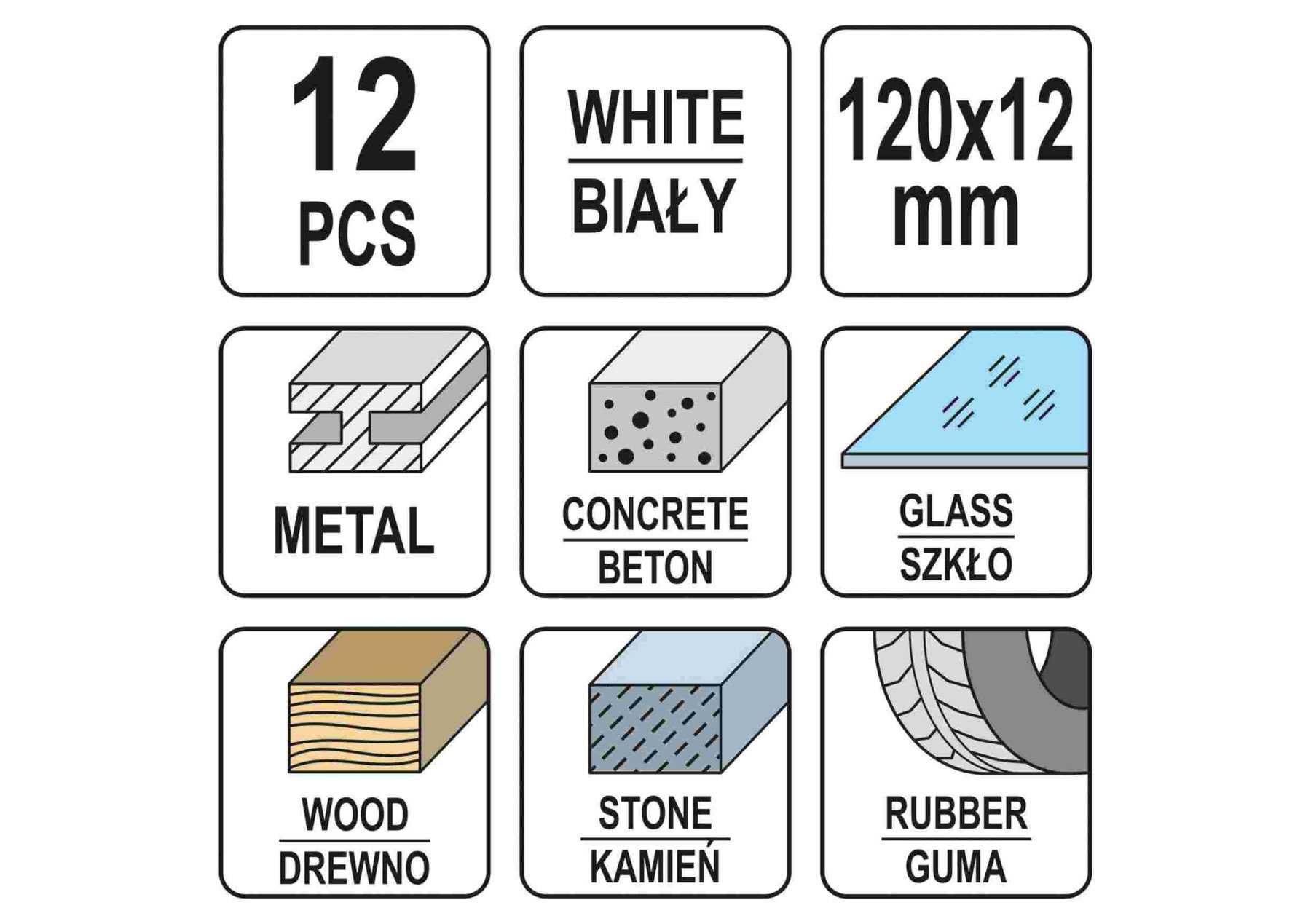 YATO Крейда маркувальна для різних поверхонь : 120 x 12 мм, біла, 12 шт