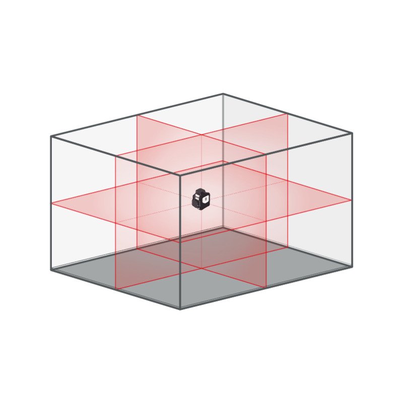 Рівень лазерний самовирівнювальний 3D-Mark, 2Vx360/1Hx360 лінії. Точність +/-3мм/10м. Дальність 30м в автономному режимі, 50м з детектором. Кут самовирівнювання 4° +/-1°. Почергове ввімкнення горизонтальної, вертикальної ліній, а також комбінований режим. Кут розгортання всіх ліній 360. Прорезинений корпус із ABS пластика, рівень захисту IP54. Червоний промінь. Літій-іонний акумулятор забезпечить надійну роботу в діапазоні від -10 до +50 С.Температура складського зберігання від -20 до +70 С.