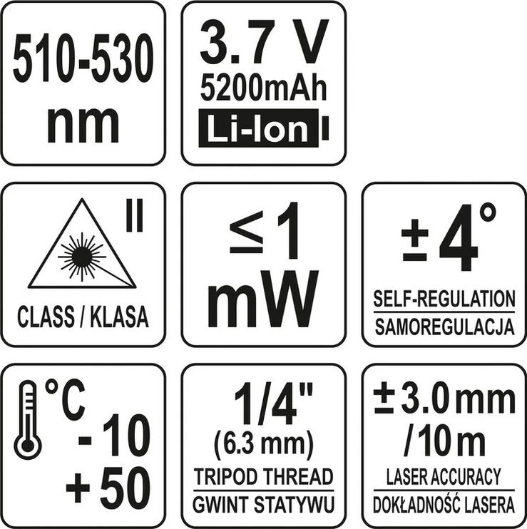 Лазерный уровень с зеленым перекрестием YATO YT-30434 - электронный уровень со встроенным лазером для выполнения точных измерений во время строительных, ремонтных и декоративных работ.