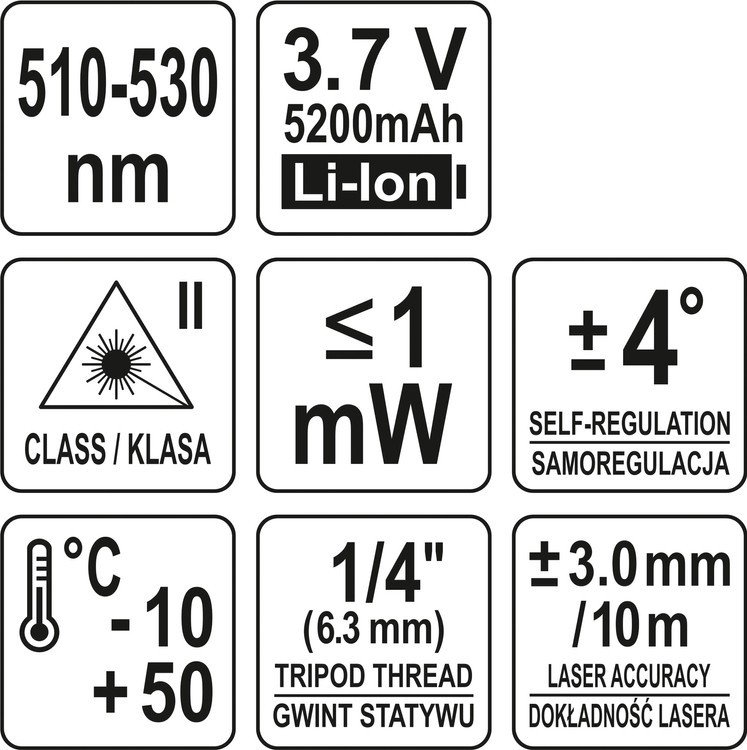YATO Нівелір лазерний самонівелюючий : точність- ±3 мм/ 10 м, верт./гориз. промені
