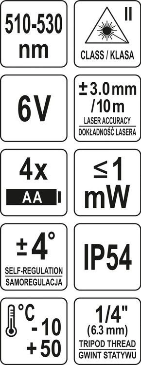 YATO Нівелір лазерний самонівелюючий : точність- ±3 мм/ 10 м, верт./гориз. промені