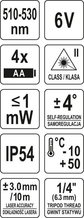 YATO Нівелір лазерний самонівелюючий : 5 променів, точність- ±3 мм/ 10 м, верт./гориз. промені