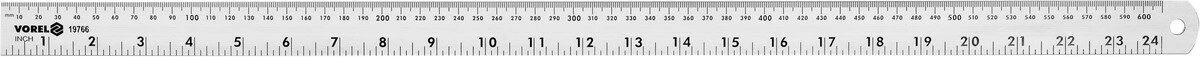 VOREL Лінійка алюмінієва , l= 600 мм, w= 28 мм з дюймовою і метричною шкалами | 19766