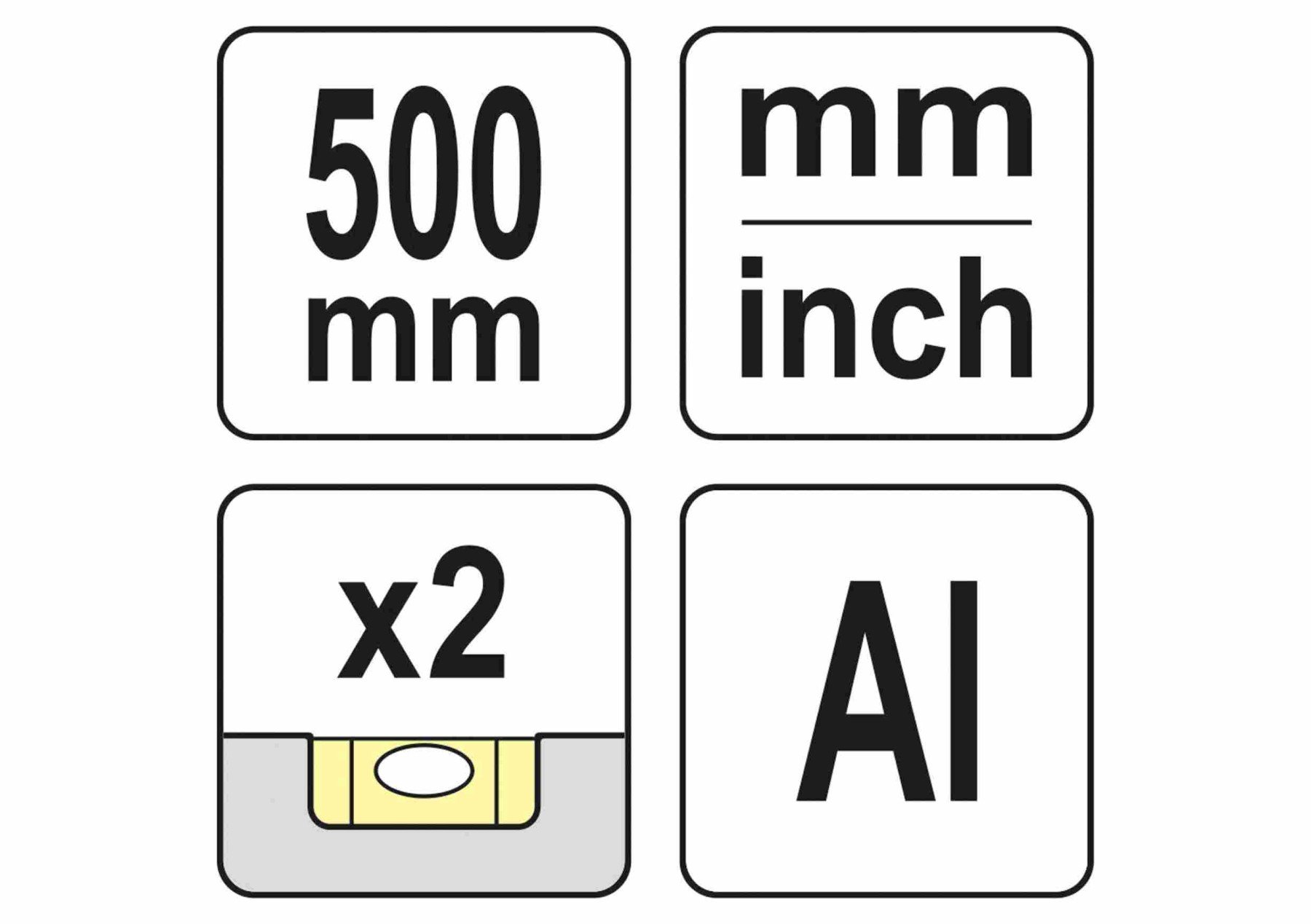 YATO Лінійка алюмінієва з ручкою : 500 x 59 x 2 мм, 2 капсули