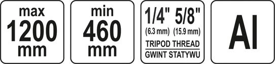 Алюминиевый штатив для лазерного уровня YATO YT-30471. Ножки с 2 выдвижными сегментами с резиновыми ножками. Блокировка с помощью винта. Крепление - штифт с резьбой 5/8', переходник 5/8' x 1/4' в комплекте.