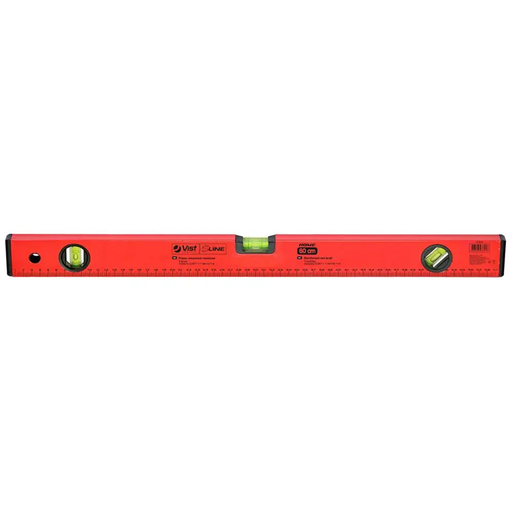 Рівень алюмінієвий зміцнений червоний - це рівень, що має ударостійкий алюмінієвий профіль з 3 вічками для визначення кутів 0 °, 45 ° та 90 °. Рівень з трьома колбами вважається універсальним рівнем, з його допомогою можна перевірити горизонталь і вертикаль, а також проконтролювати правильність похилих ліній і площини (0 °, 45 °, 90 °). Точність рівня алюмінієвого зміцненого червоного складає 0,057 °. Данний рівень алюмінієвий зміцнений червоний має метричну шкалу з ціною поділки в 1 мм. За допомогою метричної шкали, що нанесена на даний інструмент, можна виміряти відстань і використовувати його як лінійку.