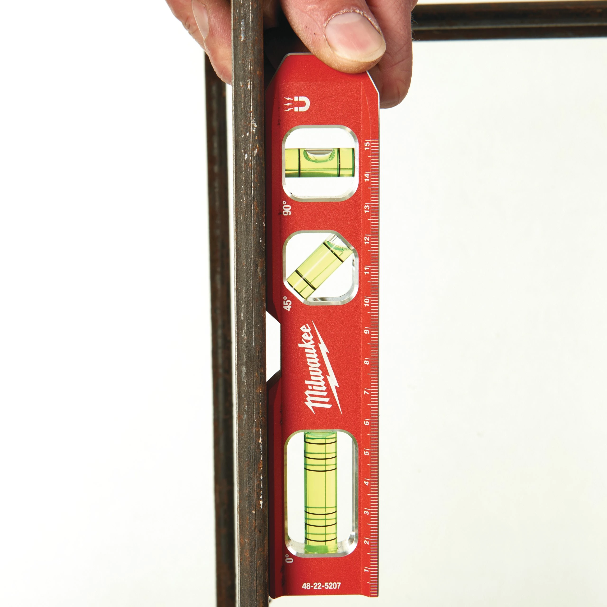 Рівень Milwaukee магнітний Billet Torpedo Надсильні рідкісноземельні магніти. Подвійна сила зчеплення із поверхнею. Збільшена область перегляду. Ризики для швидкого визначення кута нахилу у будь-якому напрямку. SHARPSITE™ конструкція колби. Максимальна видимість та захист від удару. Спеціальний паз дозволяє встановити рівень над зварним швом для перевірки кута нахилу. V – подібний паз для вимірювань на трубах. Литий алюмінієвий корпус адаптований до умов будівництва. Точно фрезеровані поверхні гарантують точність вимірів у всіх робочих положеннях. Колба з високим контрастом, легко очищається та добре видно. Лазерне маркування шкали для швидкого вимірювання. Тонкий, загострений дизайн для зручного вилучення з місць зберігання. Похибка до 0,029 ° (0,0005 "/дюйм, 0,5 мм / м) в нормальному та зворотному положенні. Довічна гарантія на точність вимірів. Комплект поставки: Рівень магнітний Milwaukee Billet Torpedo 17 см – 1 шт Суббренд Billet Torpedo Довжина (см) 17 Кількість ампул (шт) 3 Кількість рукояток (шт) немає Точність (мм/м) 0.5 Магніт так