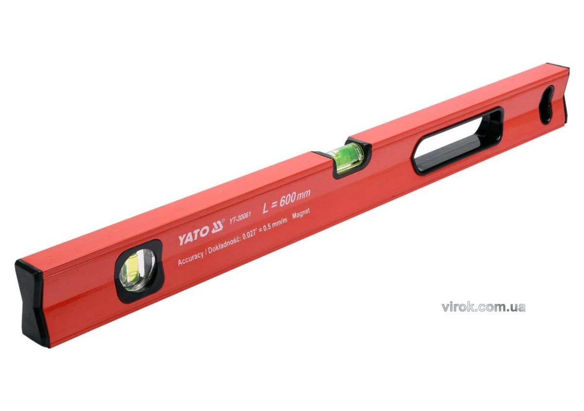 YATO Рівень алюмінієвий з магнітом : L= 60 см. 2 капсули, 1 ручка
