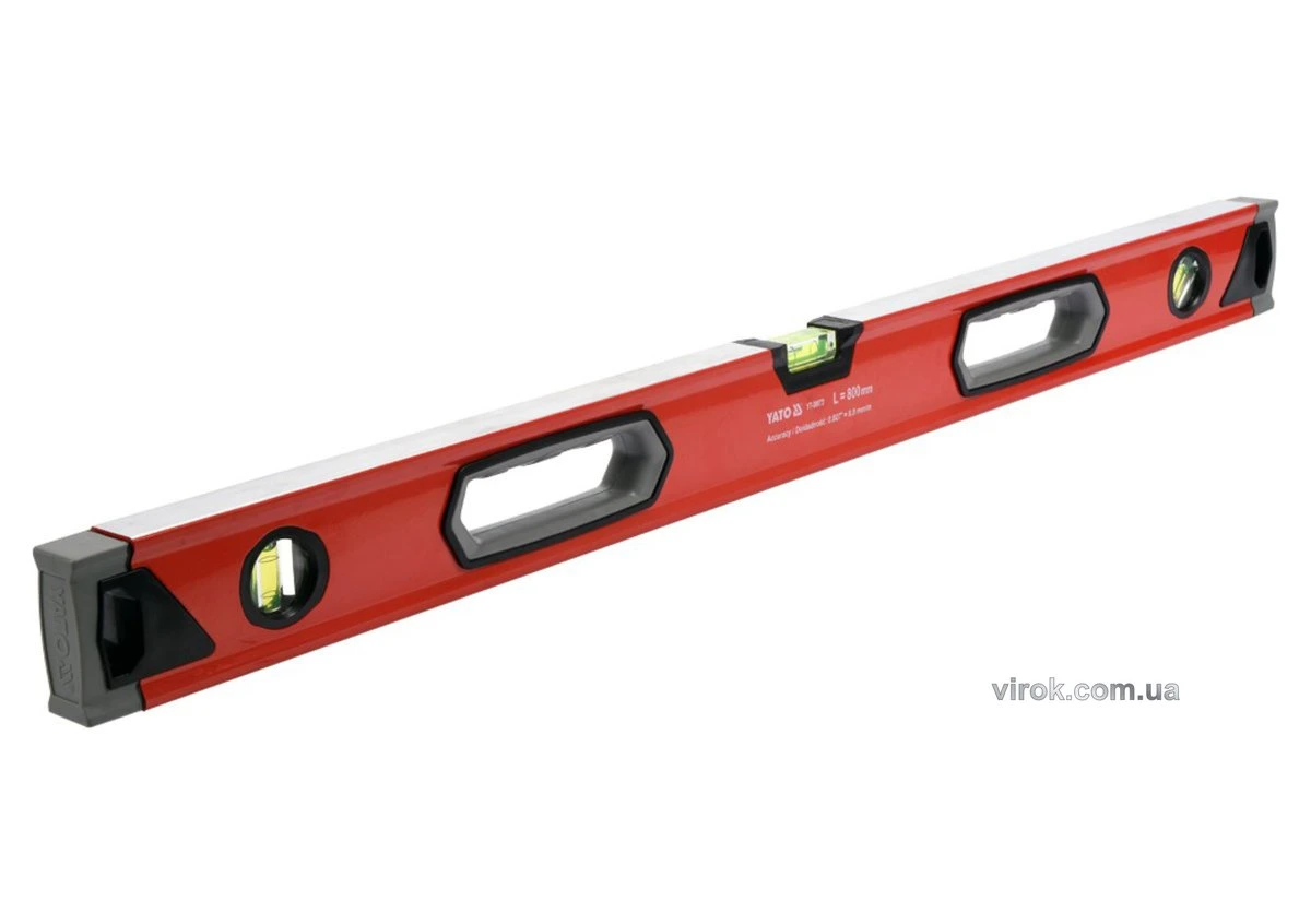 YATO Рівень алюмінієвий : L= 80 см. 3 капсули, 2 ручки