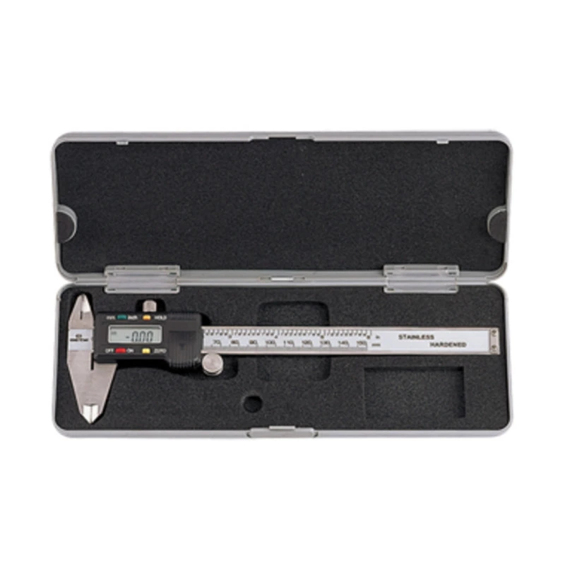 Штангенциркуль электронный (200мм) – приспособление для измерения внутренних и внешних размеров деталей, а также замера глубины. Измерительный ручной инструмент снабжен электронным табло, которое мгновенно показывает замеры в метрической или дюймовой системе измерений. Электронный штангенциркуль – незаменимый помощник слесаря на станции ТО, в собственном гараже, на стройке или на предприятии.