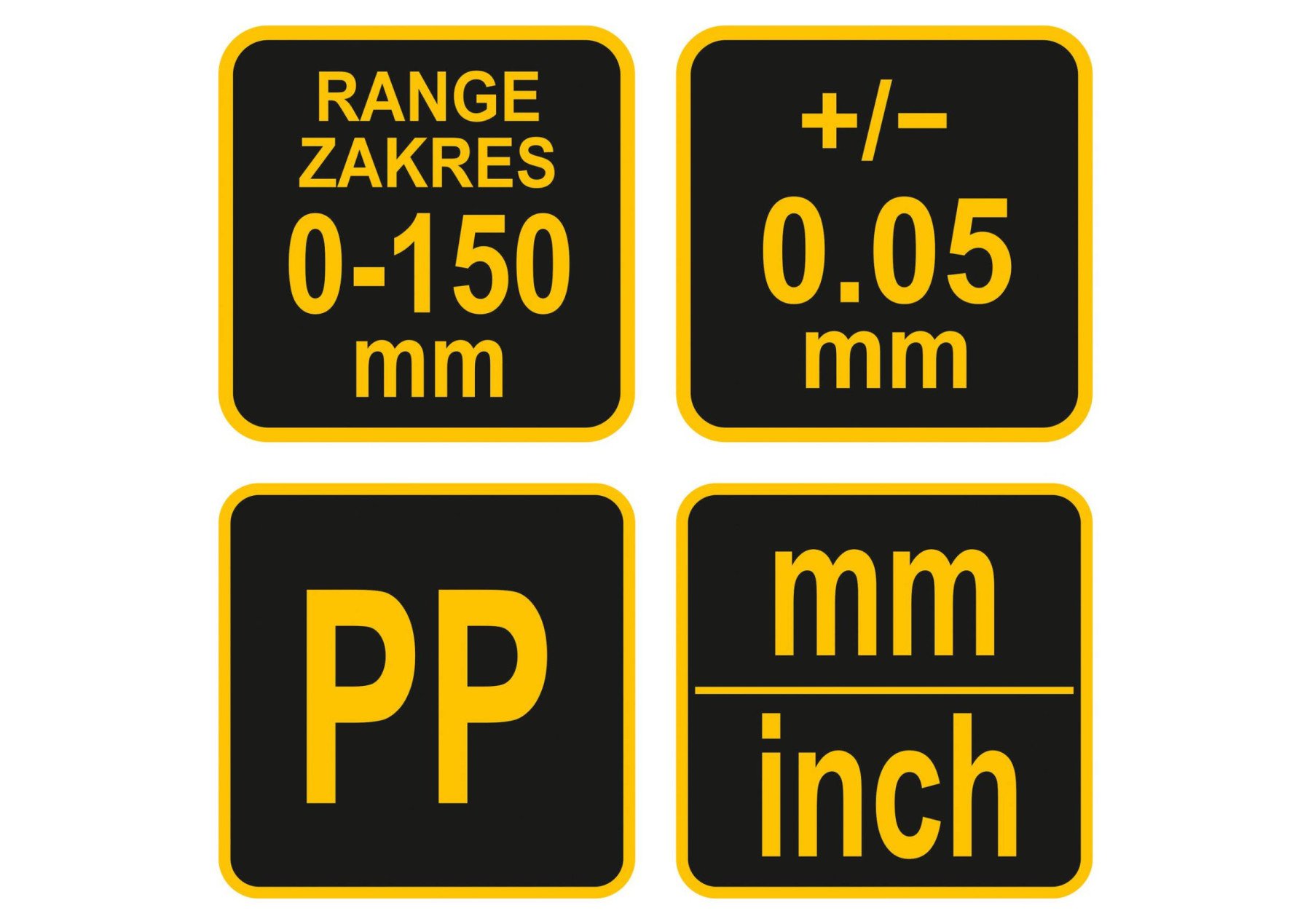 VOREL Штангенциркуль пластиковий : L= 150 мм, точність- 0,05 мм | 15120