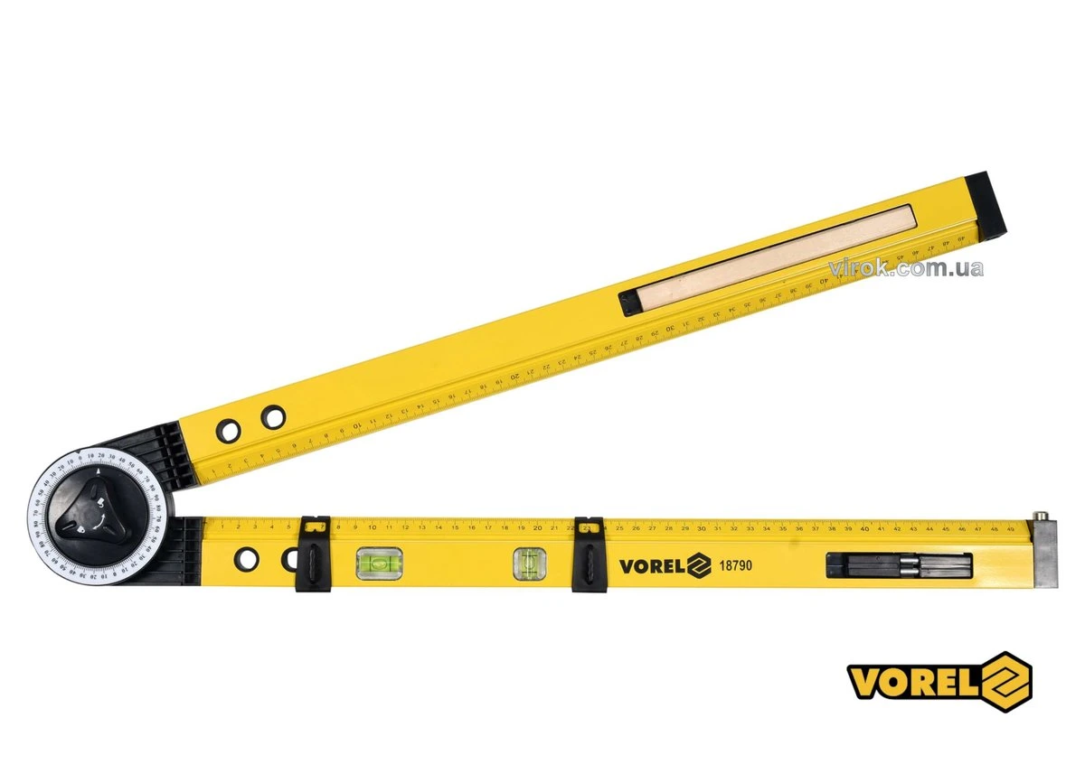 VOREL Кутомір регулювальний алюмінієвий : l=63мм, кут 0-270°, діапаз. 0-500мм, 2 капсули+олівець | 18790