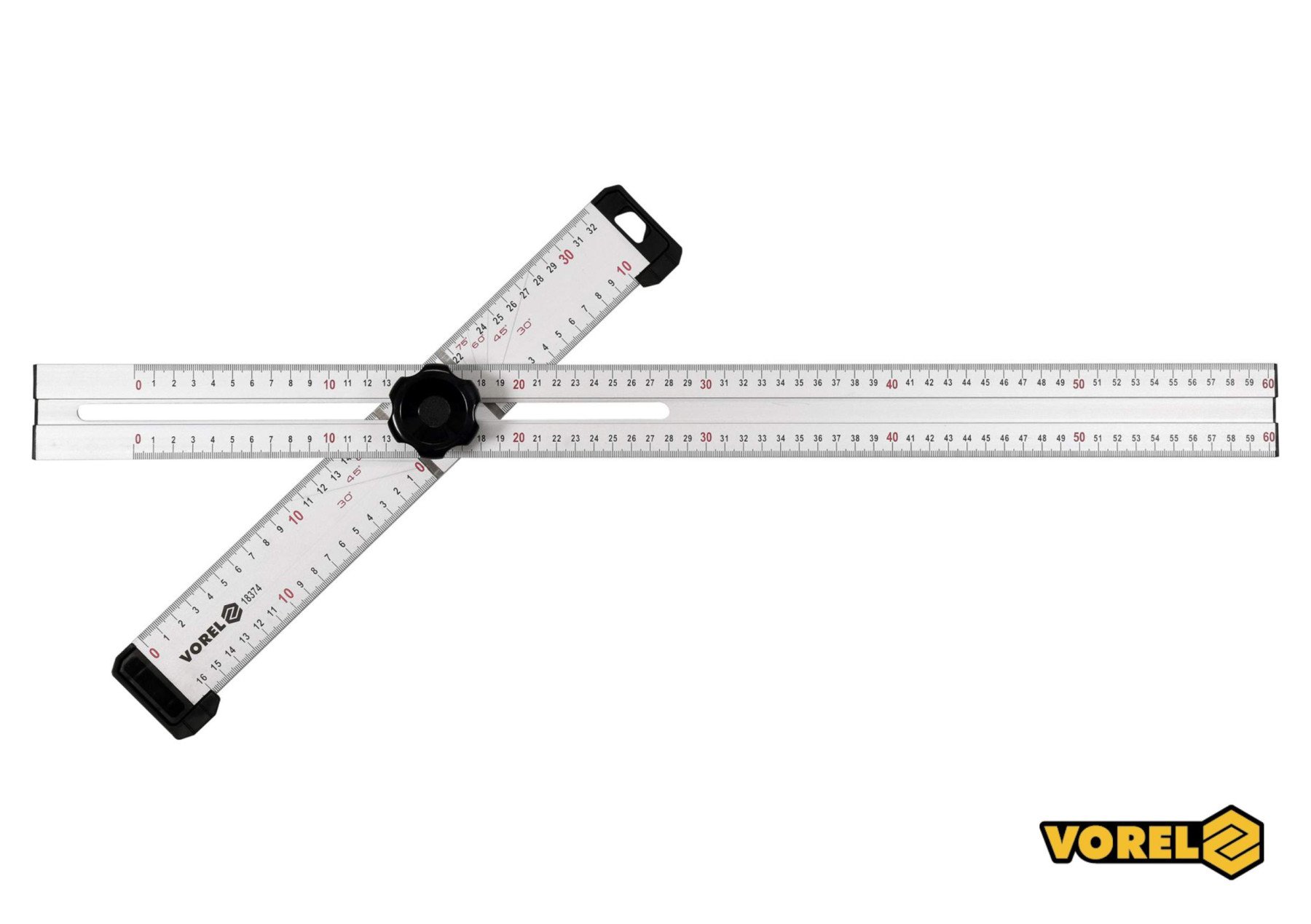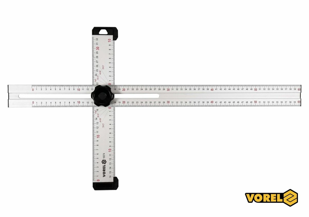 VOREL Кутник алюмінієвий регулювальний : 600 х 320 мм, з розмітками кутів 30-75° | 18374
