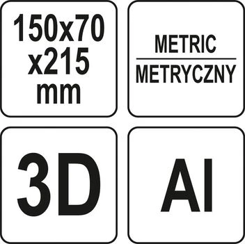 YATO Кутник алюмінієвий стереометричний 3D 150х 70х 215 мм з транспортиром і шаблонами отворів