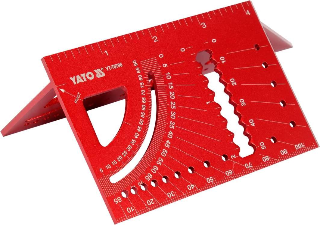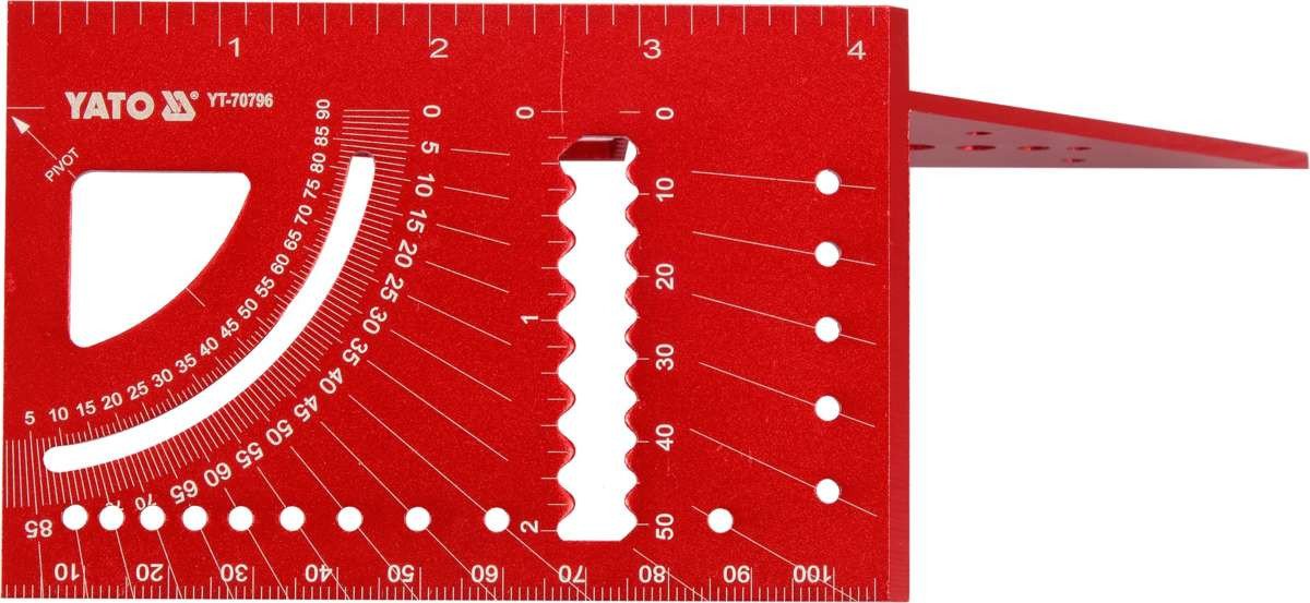 YATO Кутник алюмінієвий стереометр. 3D YATO 150х 70х 215 мм, 45°, 90° з транспортиром і шаблонами отворів | YT-70796