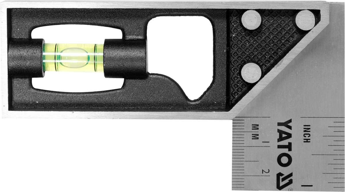 YATO Кутник слюсара з нержавіючої сталі YATO: 90° з метричною шкалою і рівневою капсулою, 150 мм | YT-70843