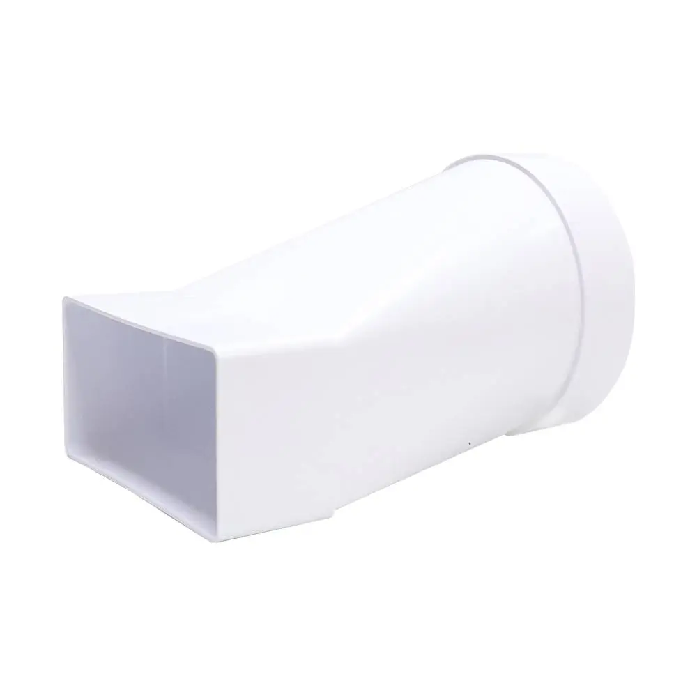 З'єднувач ексцентриковий плоского повітровода з круглим призначений для будування складних систем приточної і витяжної вентиляції побутових, громадських і промислових будівель та споруджень. З'єднувач застосовується для з'єднання прямих повітроводів з круглими. З'єднується безпосередньо з обома видами повітроводів. З'єднувач виготовлений з якісного високоміцного полістиролу. Забезпечує легкість збірки системи вентиляції.