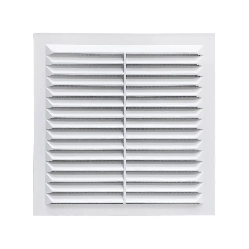 Решітка прямокутна без фланця призначена для декоративного оформлення виходів приточних або витяжних вентиляційних систем побутових приміщень і промислових будівель. Решітка вентиляційна має нахилені жалюзі для збільшення пропускної здатності повітря в каналі. Москітна сітка перешкоджає осипанню дрібного сміття та потраплянню комах з вентиляційної системи до приміщення. Для підтримки ефективної циркуляції повітря рекомендується періодично чистити сітку від пилу та бруду. Решітка призначена для настінного або стельового монтажу за допомогою клею або герметику. Виготовляється з високоякісного ABS пластику, стійкого до впливу ультрафіолету, перепадів температури та вологи.