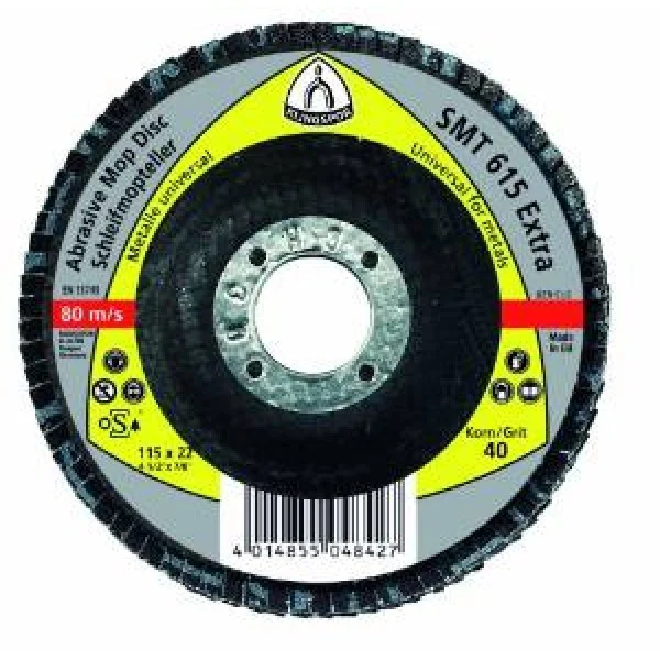 - Додатково форма: випукла 12°, пряма Оброблюваний матеріал метал (універсальне використання), сталь, високоякісна сталь, високолегована сталь, кольорові метали, алюміній, фарба, лак, пластмаса, деревина Діаметр посадкового отвору 22.23 мм Допустима швидкість обертання 12200 об/хв Зернистість 80 Материал основа: сталь; диск: скловолокно; зерно: цирконієвий електрокорунд. -
