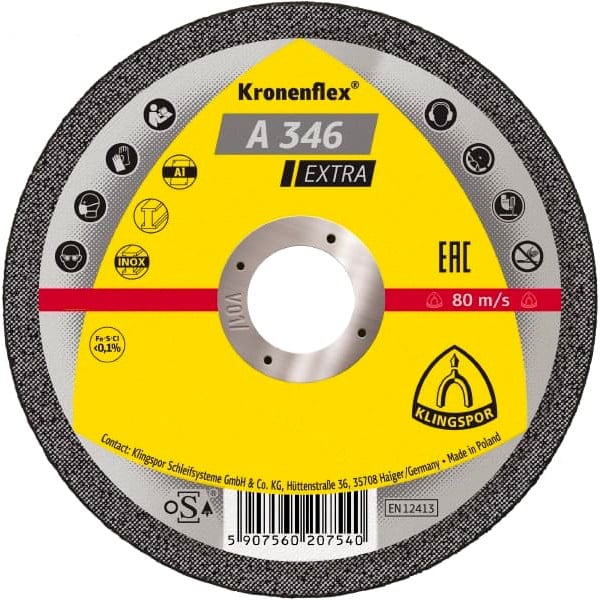 - Додатково клас: екстра, зв'язок: синтетична смола, армована волокнами, зернистість: електрорунд, структурована форма: прямий Оброблюваний матеріал нержавіюча сталь, сталь, алюміній Товщина 1.9 мм Швидкість різу 80 м/с Допустима швидкість обертання 6 600 об/хв -