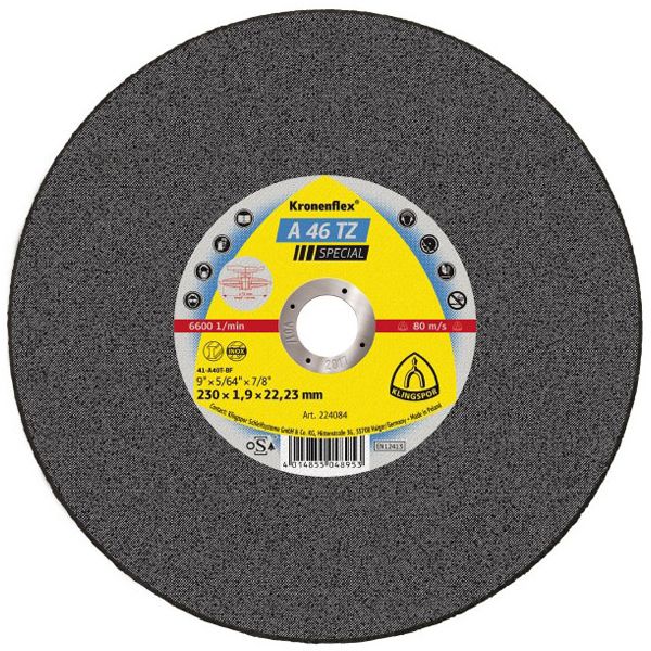- Оброблюваний матеріал нержавіюча сталь, сталь Товщина 1.9 мм Швидкість різу 80 м/с Допустима швидкість обертання 6 600 об/хв -