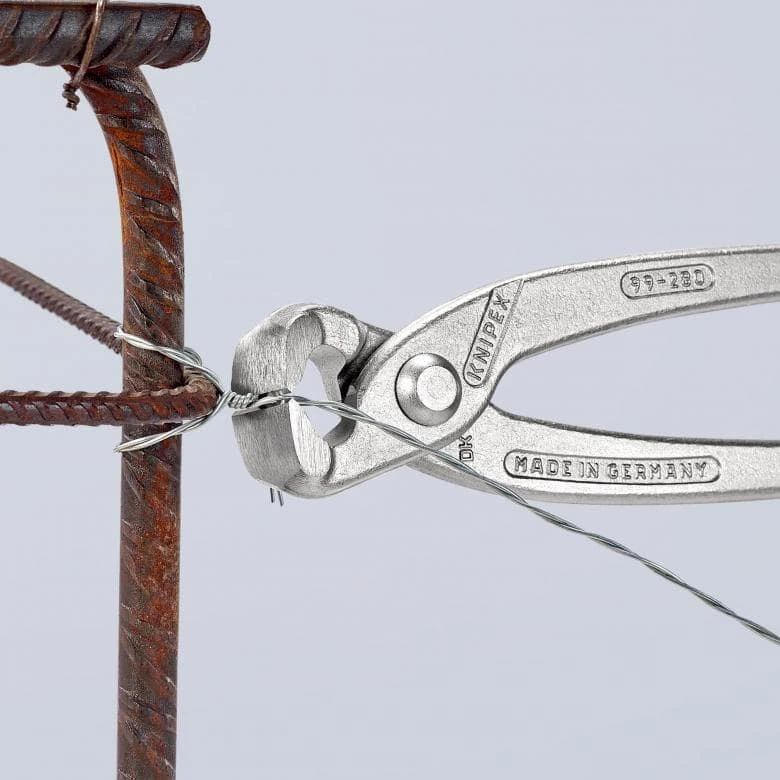 99 04 280 Кліщі арматурні для скручування та різання в'язального дроту з рулону за один робочий хід: швидко, надійно та економічно. Ріжучі кромки з додатковим загартуванням; твердість різця прим. 61 HRC. - Параметри різання / дріт середньої твердості (діаметр): Ø 2,8 - Параметри різання / твердий дріт (діаметр): Ø 1,8
